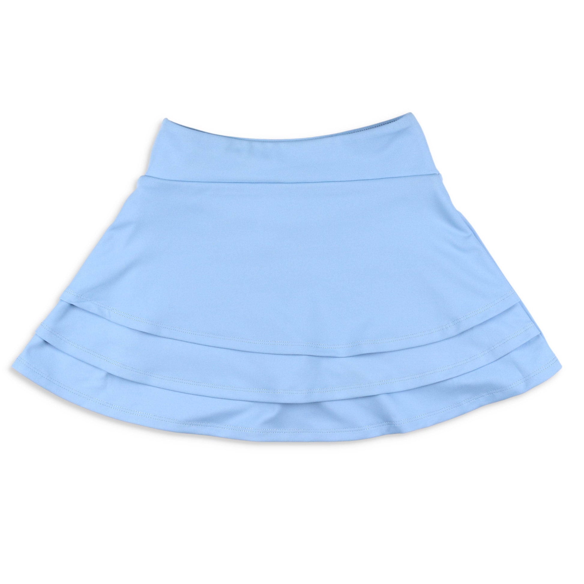 This classic and practical Skort features a light blue cool performance fabric, light blue shorts lining, layered skirt back, a wide lined waist, and nice and stretchy, making this the most comfy school outfit around!
