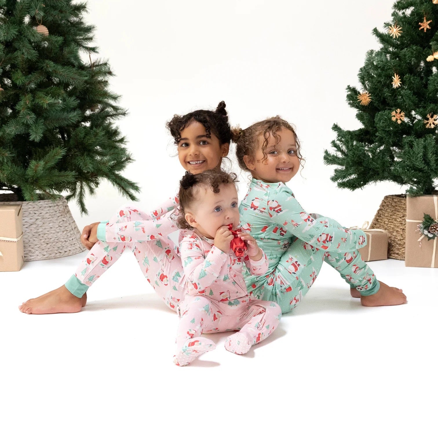Pink and teal 2 way zipper romper with Mrs. Claus golfing print.Our signature Convertible Romper makes changing your baby a Snap! (or as we like to say a Zip!) Super soft Viscose from Bamboo fiber fabric and Angel Dear's signature prints will keep the oohs and aahs a- coming. Our Convertible Rompers are designed to meet snug-fitting standards—no chemicals needed! Keep it cozy, cute, and safe by wearing these PJs nice and snug!