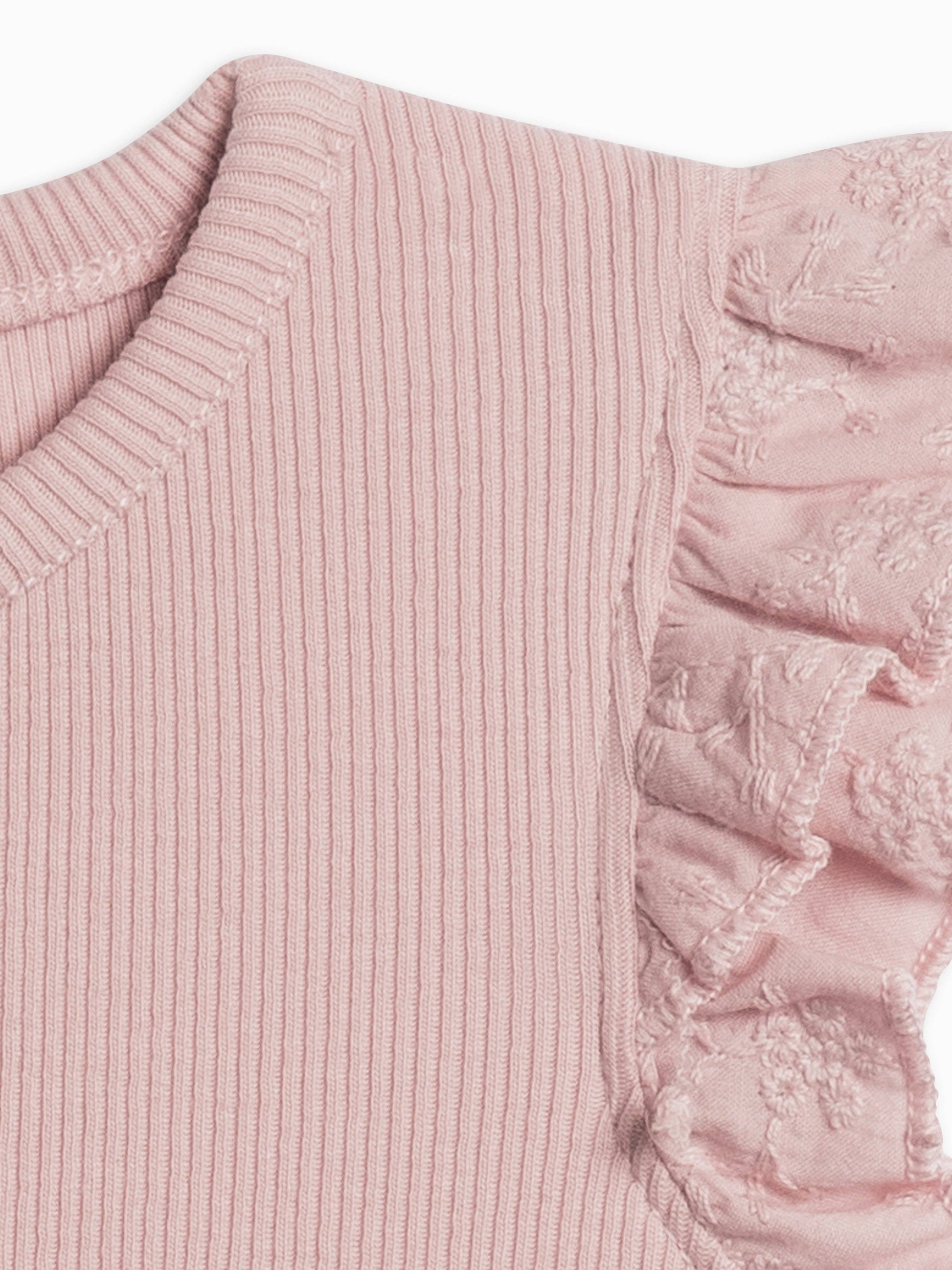 Maggie Ribbed Short Sleeve Bodysuit with Eyelet Ruffle