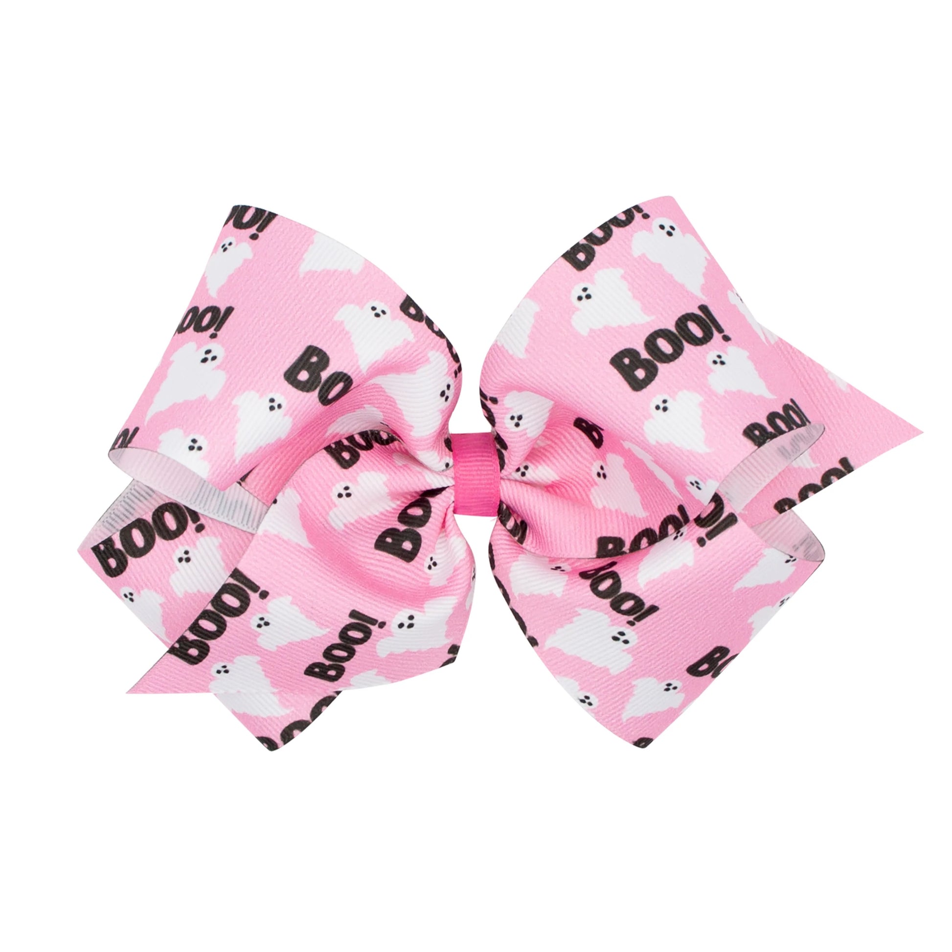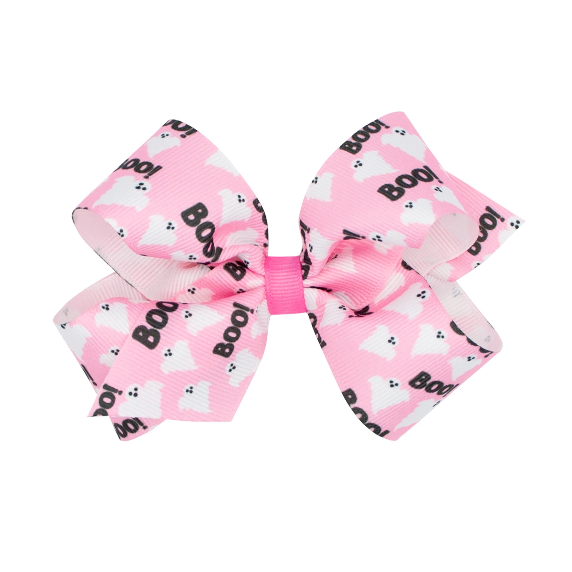 Pink Boo Printed Grosgrain Hair Bow on Clippie.