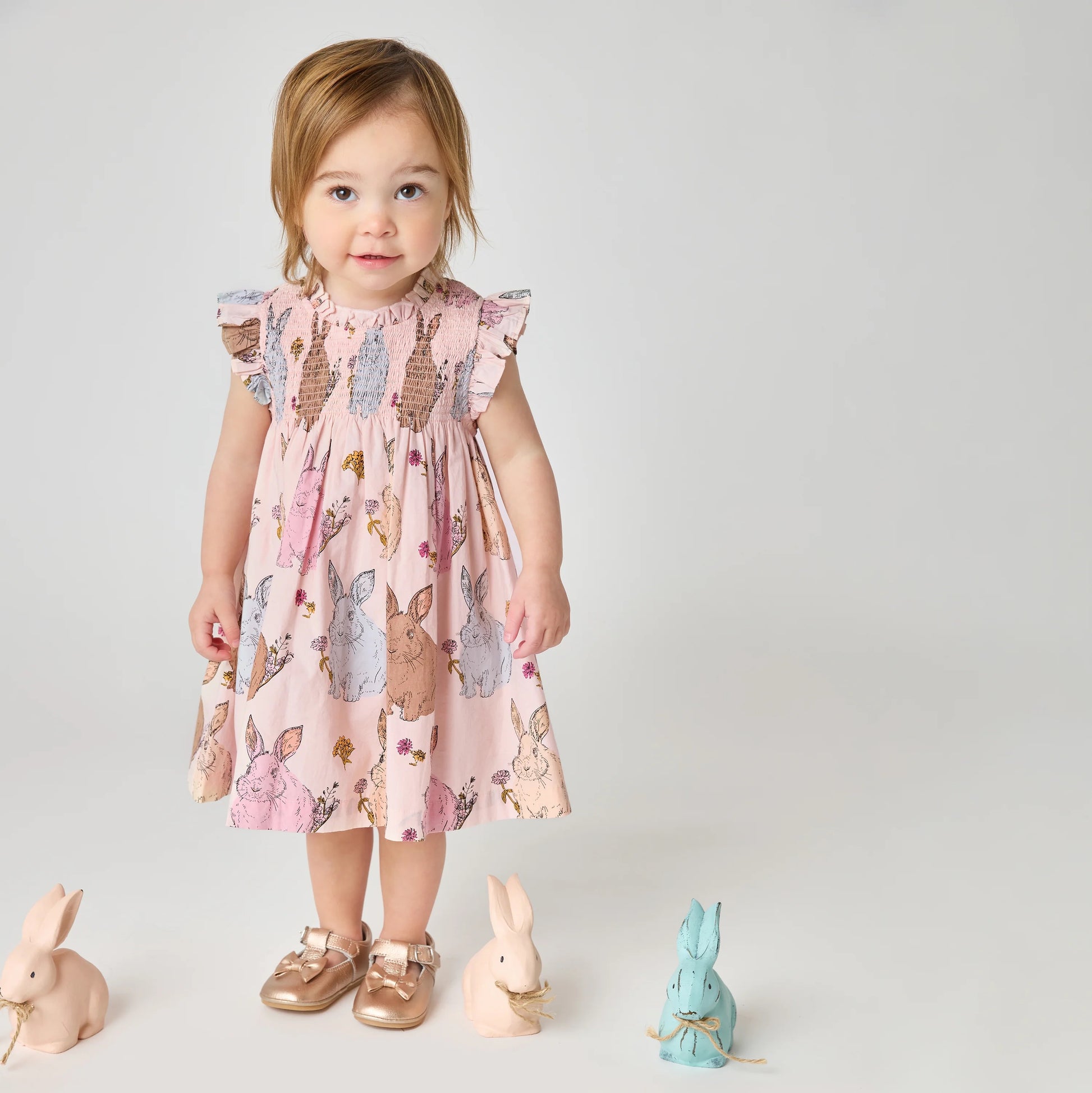 Match with the Girls Double Ruffle Jennifer Dress in Pink Vintage Bunnies to complete the look for a love filled Easter moment.