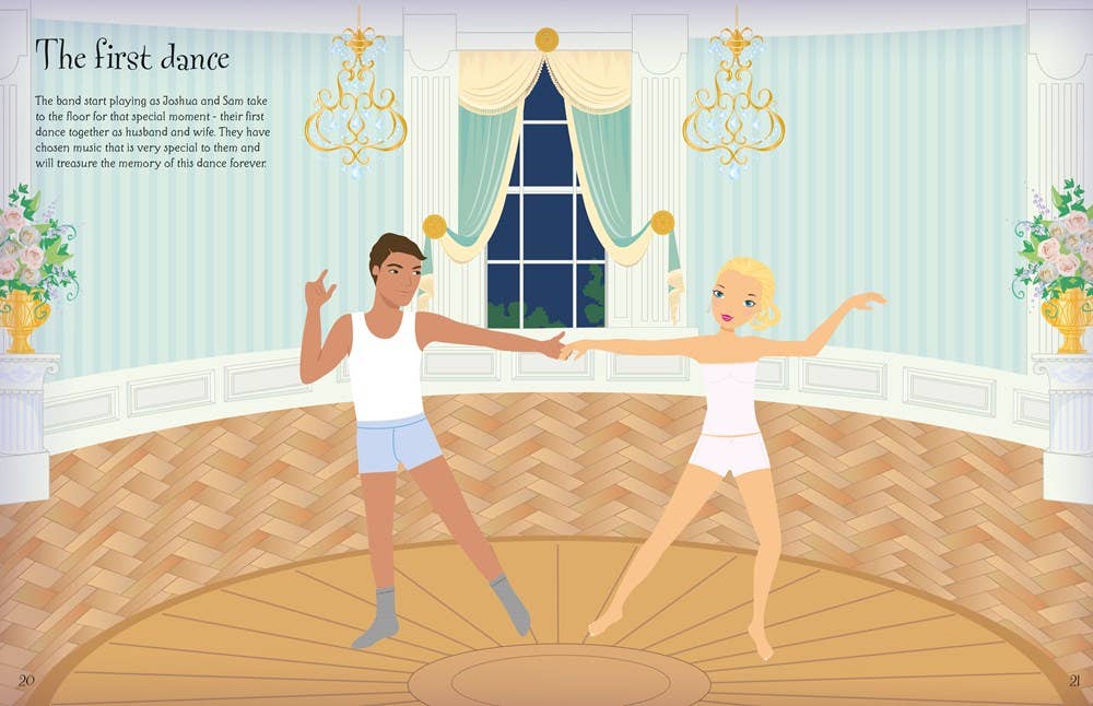 Fiona Watt | Paperback | Series: Sticker Dolly Dressing | JUVENILE FICTION/Holidays & Celebrations / Birthdays | Discover the world of Sticker Dolly Dressing!Join the exciting world of a bride-to-be as she prepares for, then celebrates her special day in this magical sticker book. With over 300 stickers to dress the brides and grooms as they prepare for their big day - trying on wedding dresses and suits, choosing the cake, dressing for the big day and the first dance.. The number 1 bestselling sticker series with characters to dress and colorful scenes to decorate. Over 200 stickers in every book! . With 12 scenes to complete. Easy to remove perforated sticker pages for decorating each scene . Hours of enjoyment to stimulate any child's imagination . Develop children's concentration and fine motor skills. Ideal for ages 5+. 44 pages of screen-free fun!