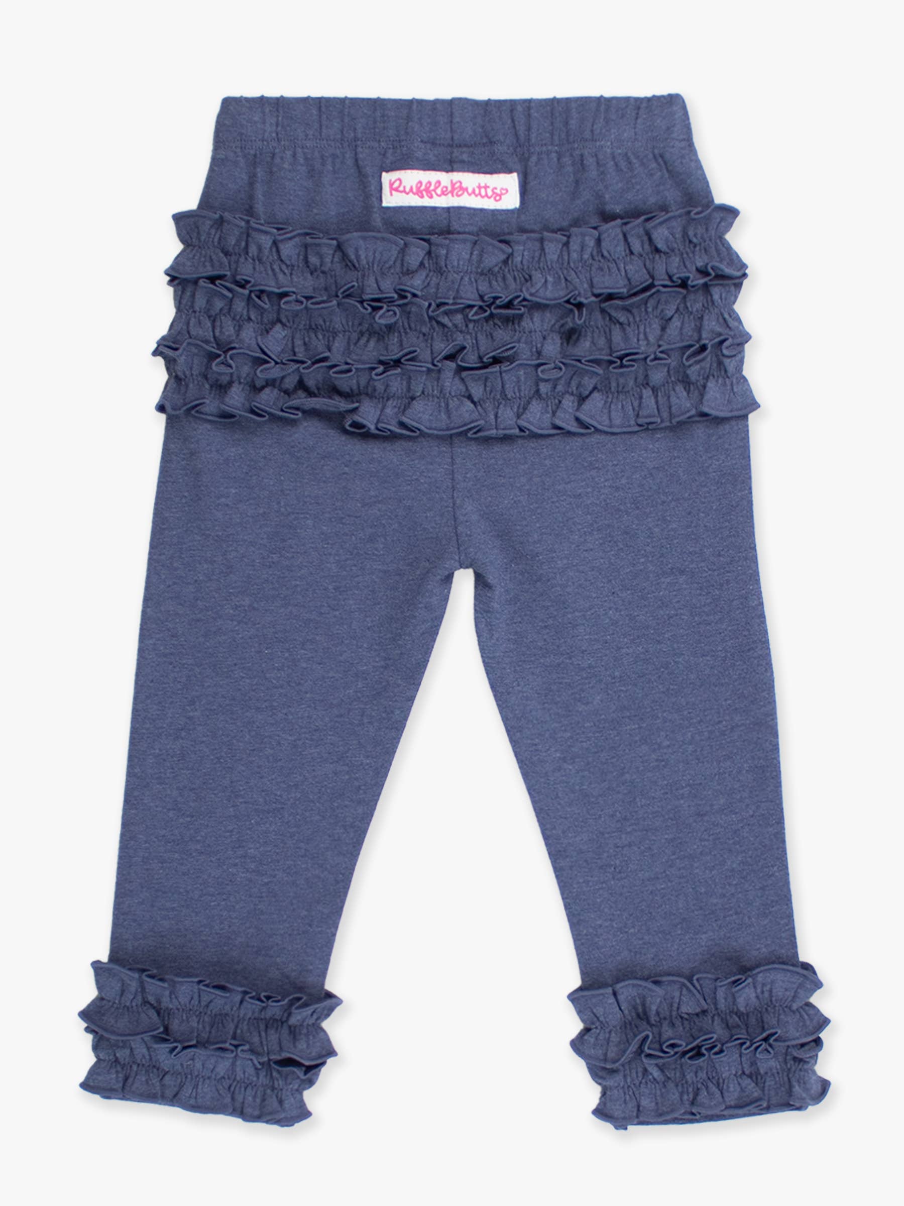 Toddler Girls Faux Denim Classic Ruffle Leggings with Signature Rear Ruffles
