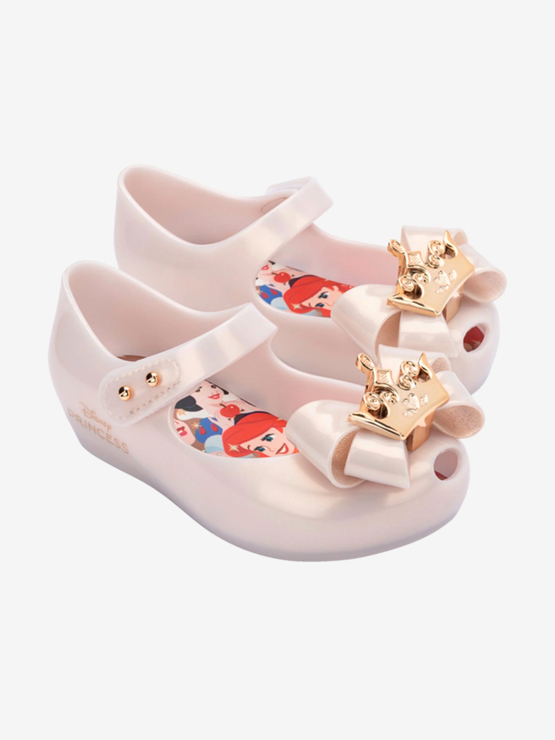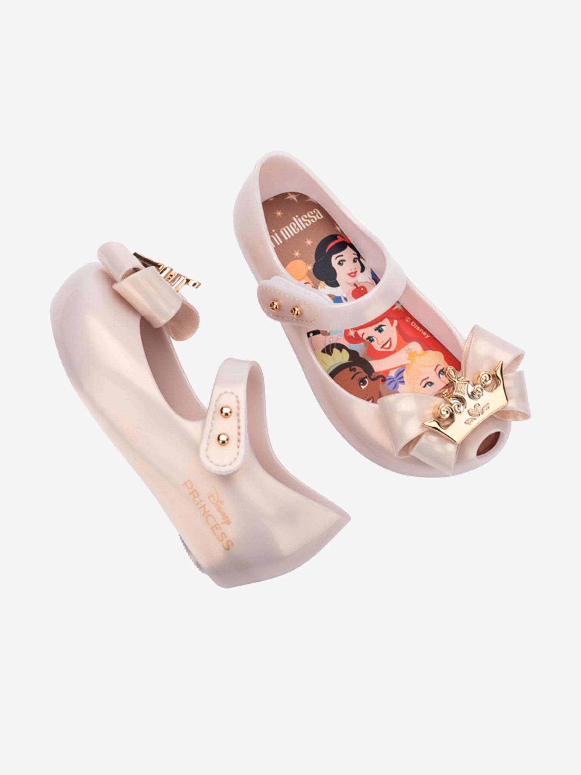 Introducing the exquisite Girls Ultragirl II + Disney Princess Ballerinas in Beige by Mini Melissa, a divine addition to any young lady’s wardrobe.